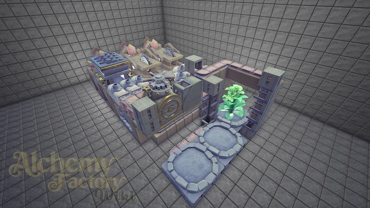 「初級肥料」を製造しながら、苗床を2つ稼働させる設計図です。