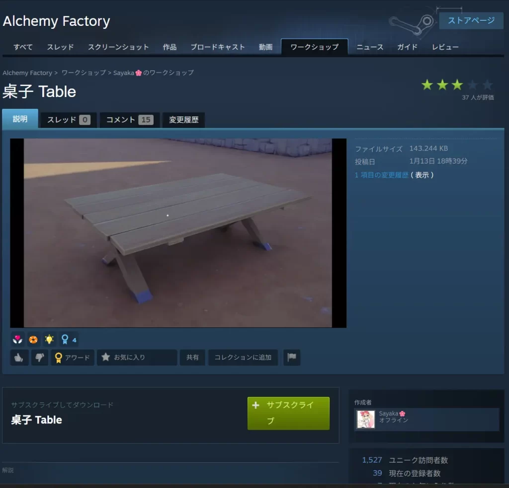 Steamワークショップ(https://steamcommunity.com/app/3669570/workshop/)にアクセスする。