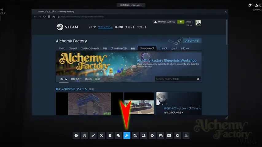 ゲーム中にアクセスする場合、Steamオーバーレイを起動した後、🔧スパナのマーク🔧からアクセスできる